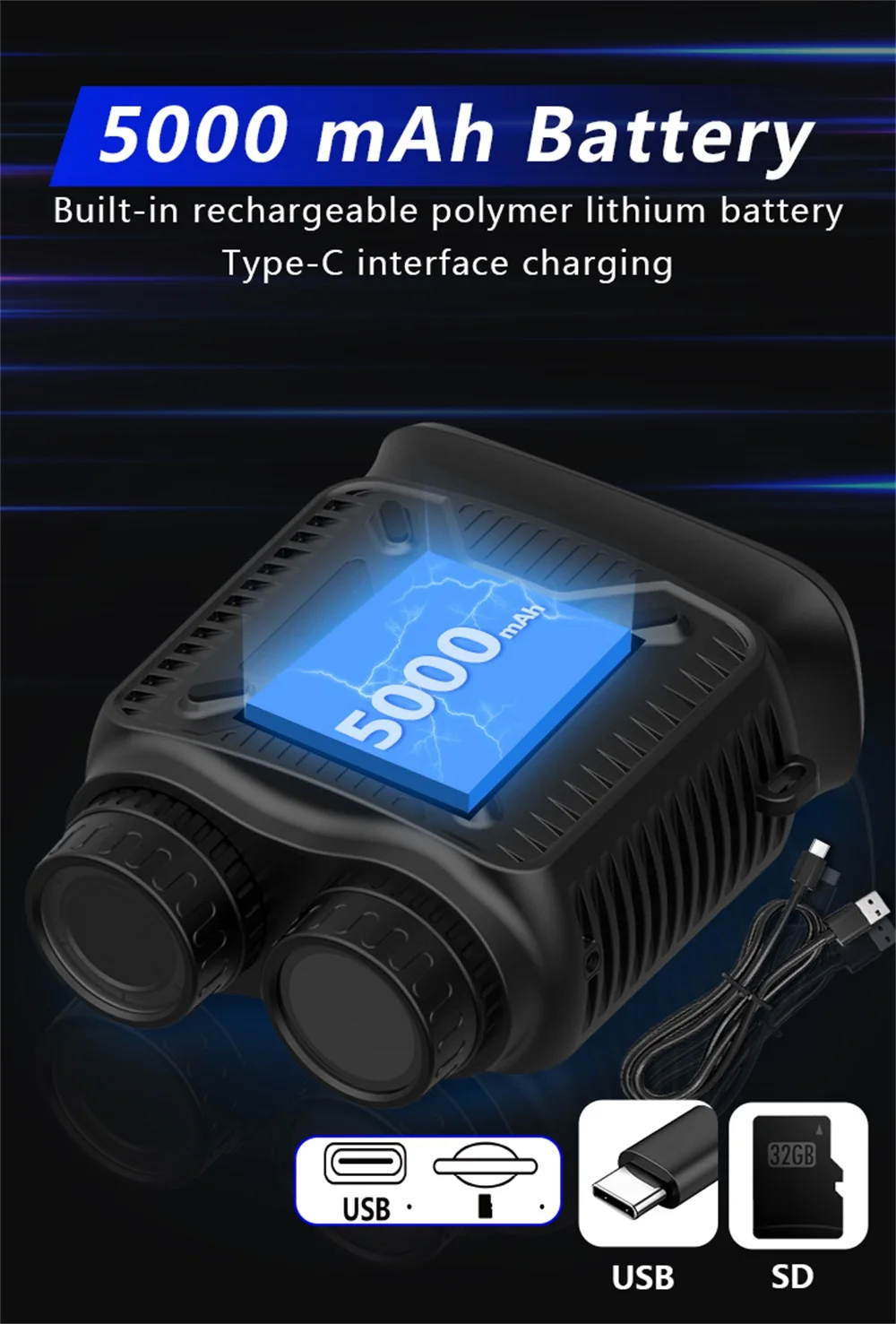 - Batería Recargable de 5000mAh: Alimentados por una batería de litio recargable, incluida para un uso prolongado.