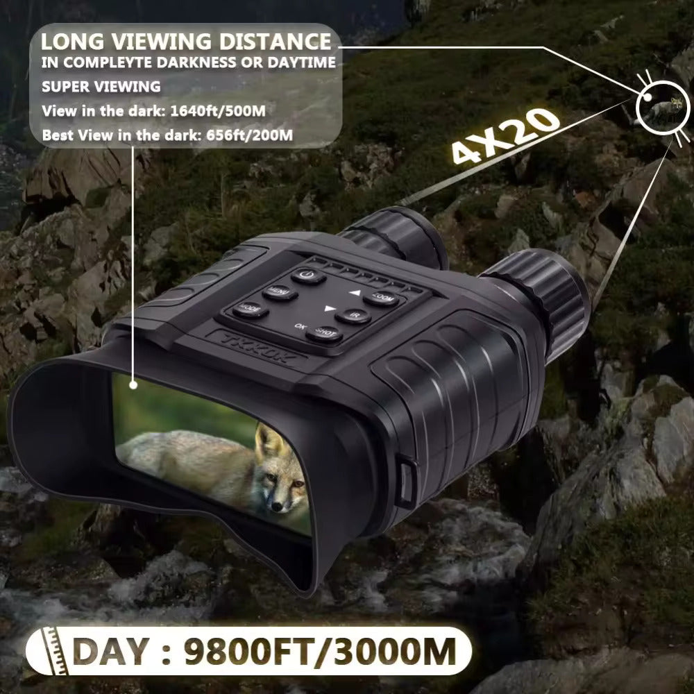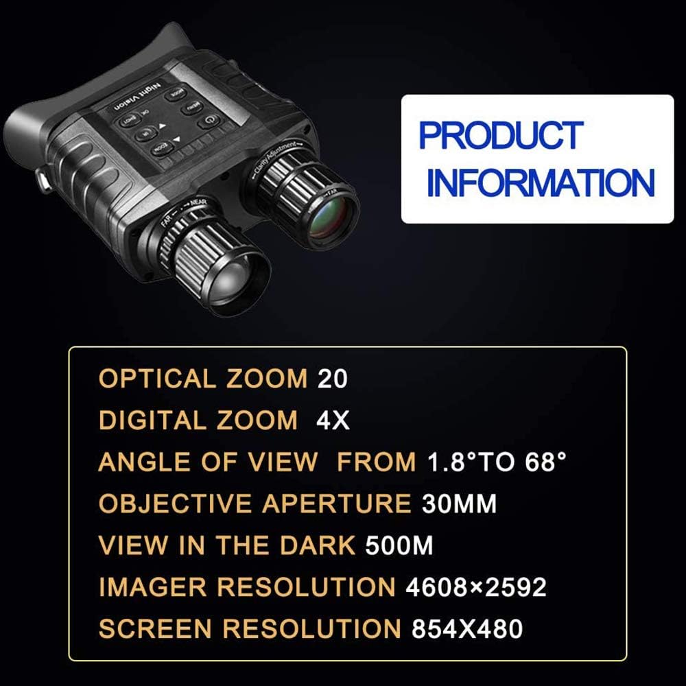 - Pantalla HD de 3 Pulgadas: Equipados con una pantalla de alta definición de 854 x 480 píxeles, estos binoculares te ofrecen una experiencia visual clara y detallada en cualquier entorno.