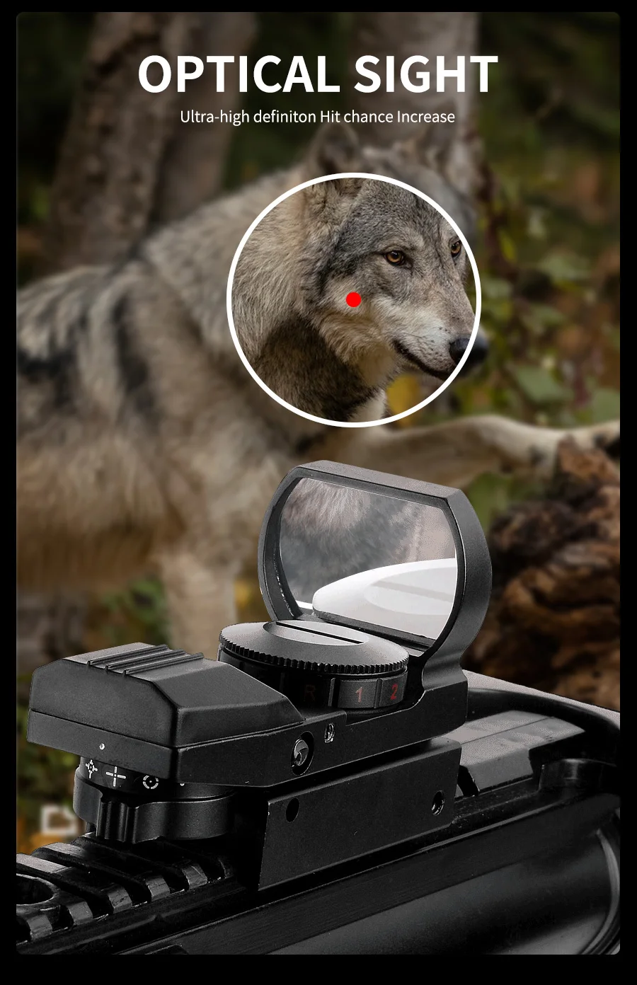 La Mira Holográfica HD101 es una herramienta avanzada diseñada para tiradores que buscan precisión y fiabilidad en una variedad de situaciones. Con su construcción robusta y tecnología de punto rojo y verde, es ideal para actividades tácticas y al aire libre.