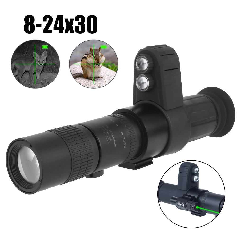 La mira telescópica 8-24X 1.54" FHD Monocular Night Vision Rifle Sight Scope es una herramienta avanzada diseñada para cazadores y tiradores que buscan precisión y claridad tanto de día como de noche. Con su capacidad de visión nocturna y su pantalla FHD de gran tamaño, esta mira garantiza una experiencia de caza inigualable.
