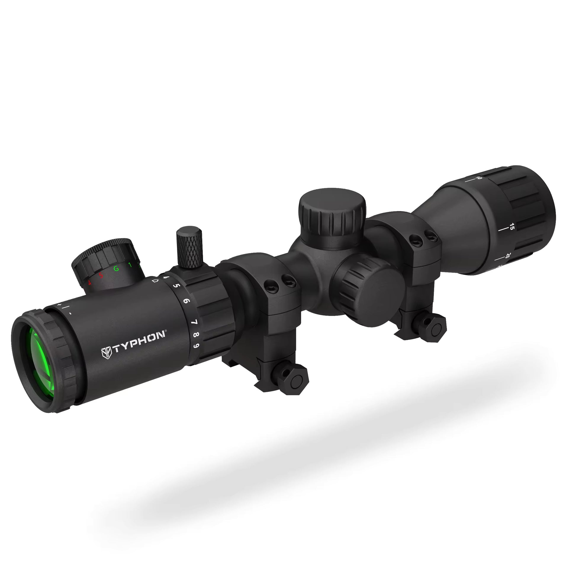 - Iluminación Personalizable: Con 5 niveles de brillo en colores rojo y verde, la retícula iluminada de la TYPHON te permite ajustar la visibilidad para adaptarse a cualquier entorno de luz, desde amaneceres brillantes hasta crepúsculos oscuros.